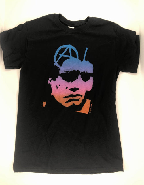 During their brief history, the Germs went through a whopping nine drummers. Dan Bolles, however, was by far the longest-tenured, and he also designed the band’s simple logo: a blue circle on a black backdrop, said by some to represent a cigarette burn that vocalist Darby Crash called “the Germs burn,” inflicted on the skin of a fan or a member of the band. (source)