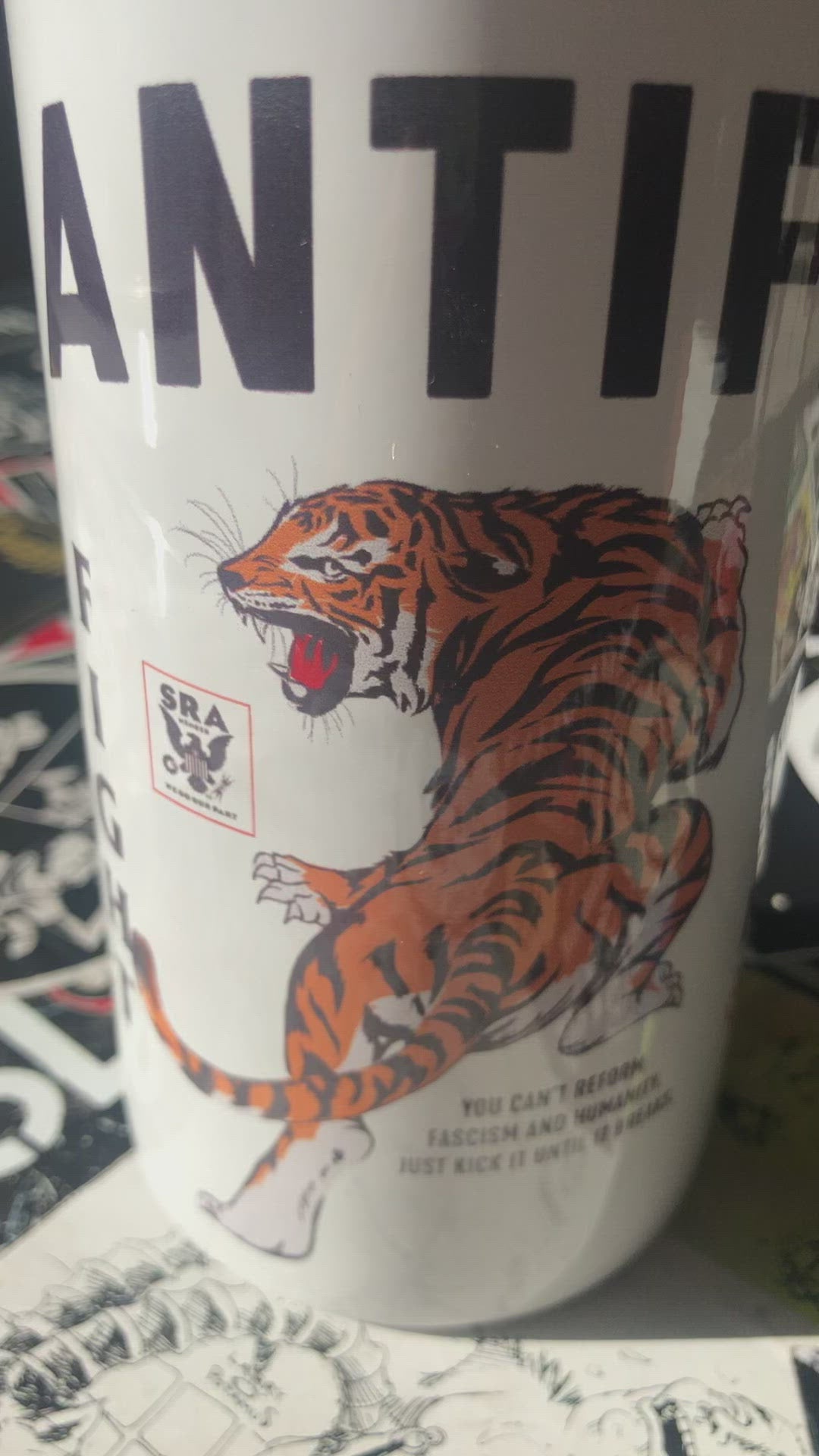 One of the most important items to have when you're out on the streets, to stay hydrated, wash tear gas out of anyone's eyes and show exactly where you stand - upright and strong against fascism!